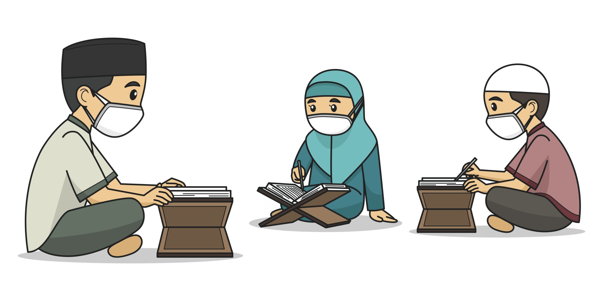 The Ustaz And Students Character Read The Koran Wearing Muslim Clothes 3216385 Vector Art At Vecteezy