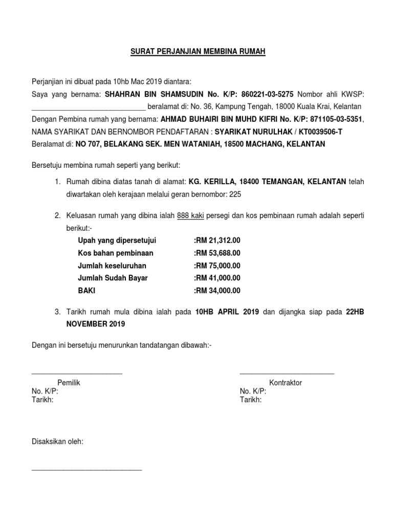 Surat Perjanjian Pembinaan Rumah Written By Ranty52 Saturday, April 16, 2022 Add Comment Edit Surat Perjanjian Pembinaan Rumah Pin By Ramli Rosman On Surat Perjanjian Sewa Rumah Surat Some Pictures Picture Contoh Surat Perjanjian Pembinaan Rumah Letter 7saudara Com Surat Perjanjian Membina Rumah Pdf Share this post
